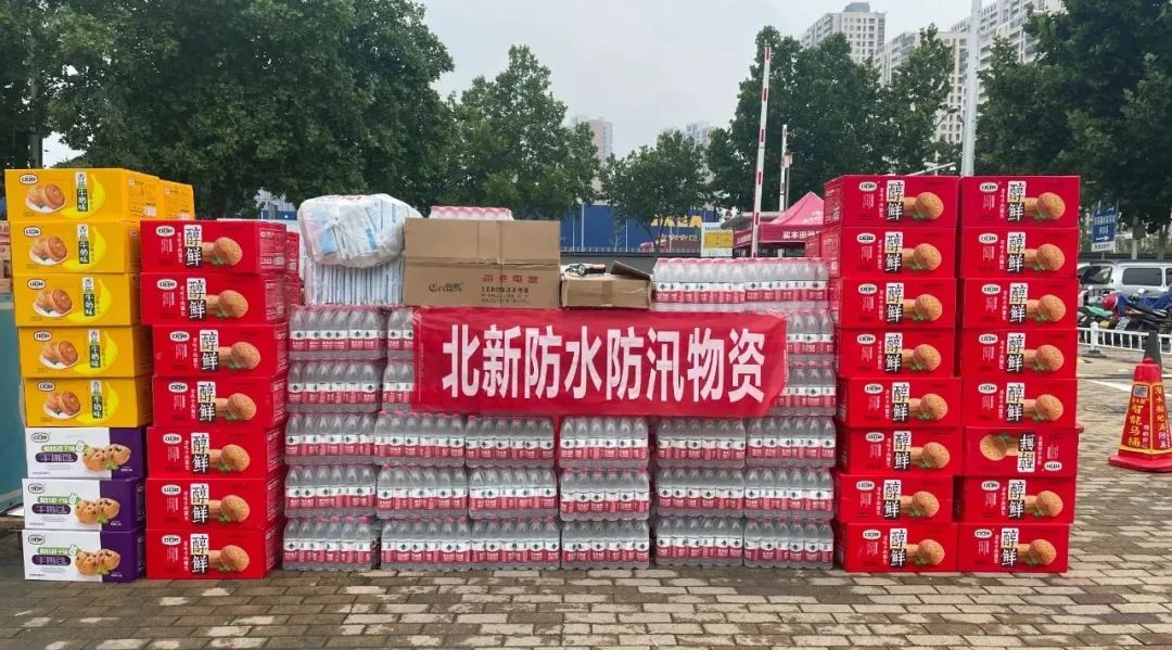 ▲北新防水向郑州市南阳路街道阳光社区发放物资,累计帮助受灾家庭达367户