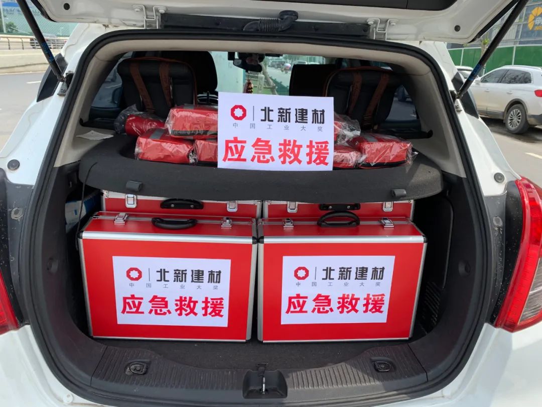 所属北新建材北方公司中原运营区组织人员向被困人员及经销商给予救急物资。