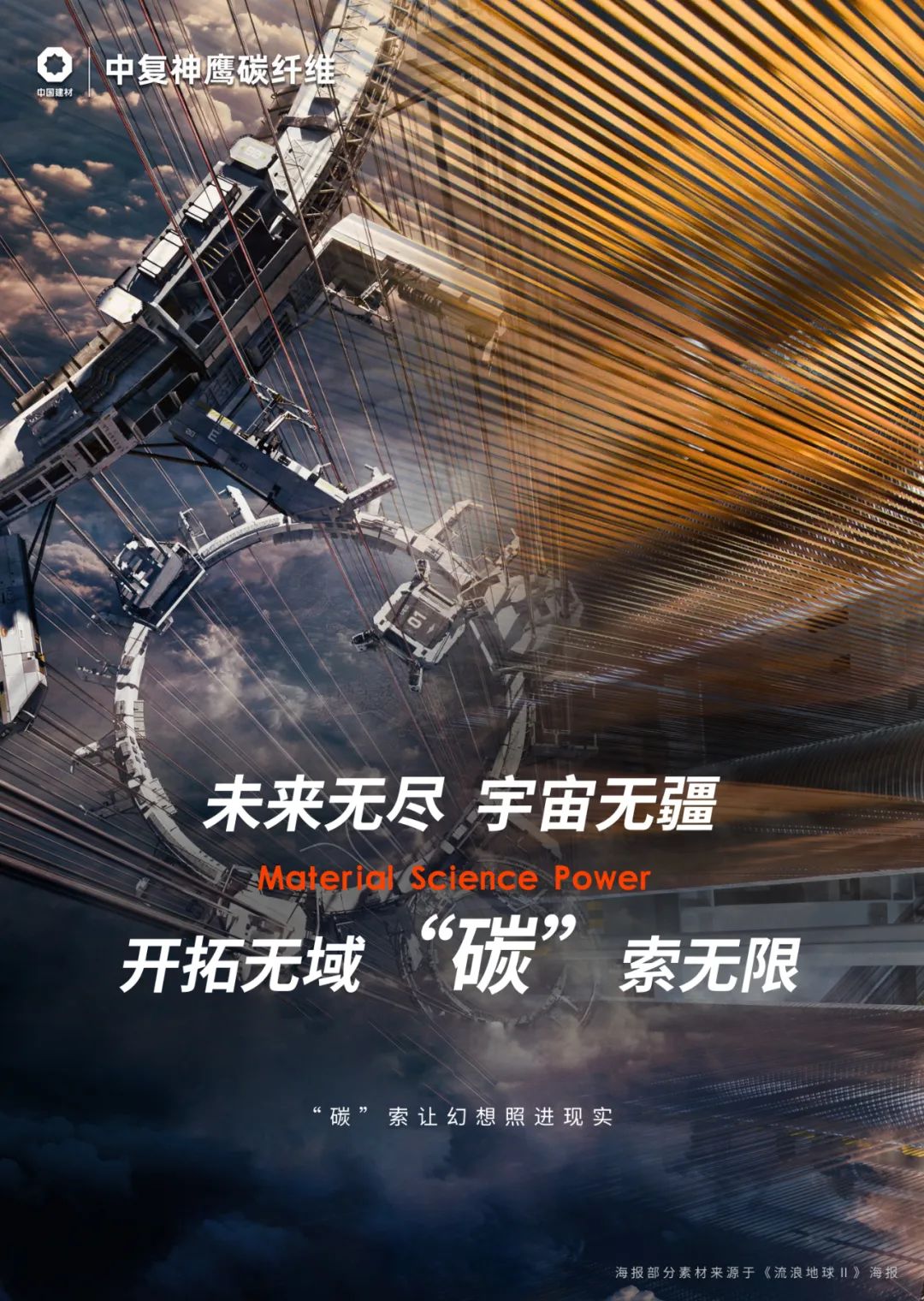 《流浪地球》作者说:“太空电梯最大的障碍是它的材料,要把一根钢索从地球延伸到三万公里高空,现在我们强度最高的材料就是碳纤维。”这个任务,交给我们!高性能碳纤维强度是普通钢材的10倍,具有极高的耐磨性和耐腐蚀性,可以有效抵抗外界环境的侵蚀作用。中复神鹰定不负众望,为航天强国贡献力量,助力太空“天梯”在将来成为现实!