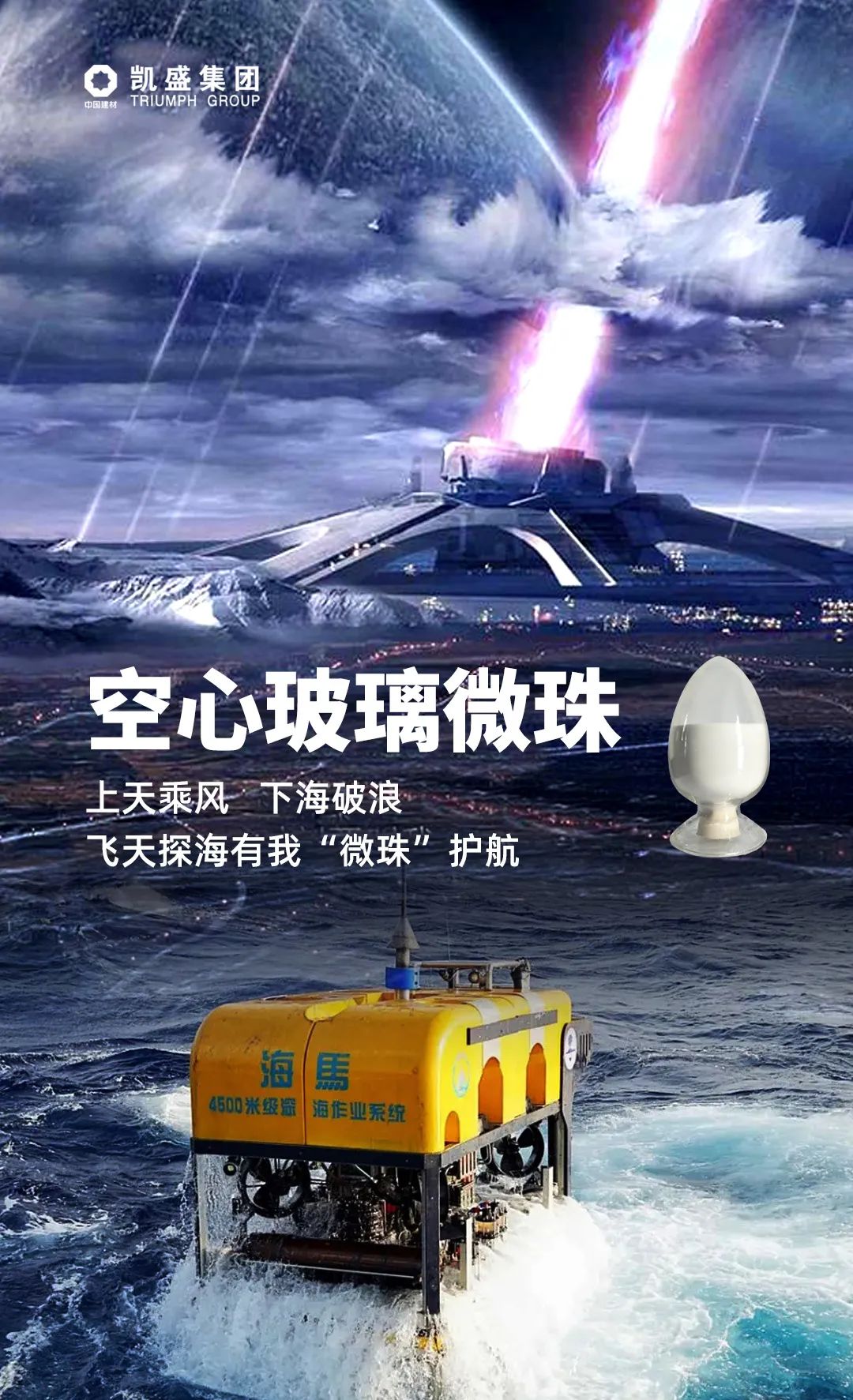 地球要“流浪”,发动机动力不强劲怎么行?我们的高性能空心玻璃微珠可作为可控核聚变燃料的储存材料,实现氘氚燃料的储存和可控式进出,帮助产生强大的推进能量来使地球得以“流浪”。不止“上天”,“下海”我们也不在话下!曾作为制备固体浮力装置最关键的材料,助力我国首台4500米级深海遥控无人潜水器“海马号”深潜成功。这天上地下、四海八荒,我们随叫随到!