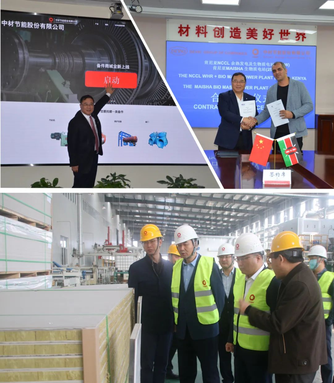 图1 2021年9月,备件电商平台上线启动仪式;图2 2021年10月,马明亮出席肯尼亚Kaloleni和Maisha Mabati项目签约仪式;图3 2020年11月,马明亮到中材宜昌调研