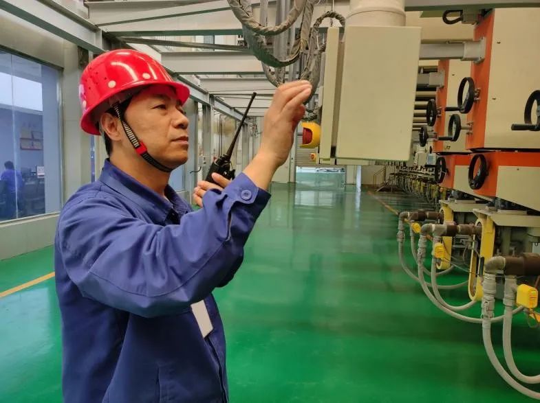 走进龙海玻璃的生产车间总能看到一个忙碌的身影,有时在中控室与同事们分析讨论生产工艺参数调整,有时在冷端现场紧盯玻璃切割情况,有时在质检室观察玻璃的质量变化,他就是张同海。