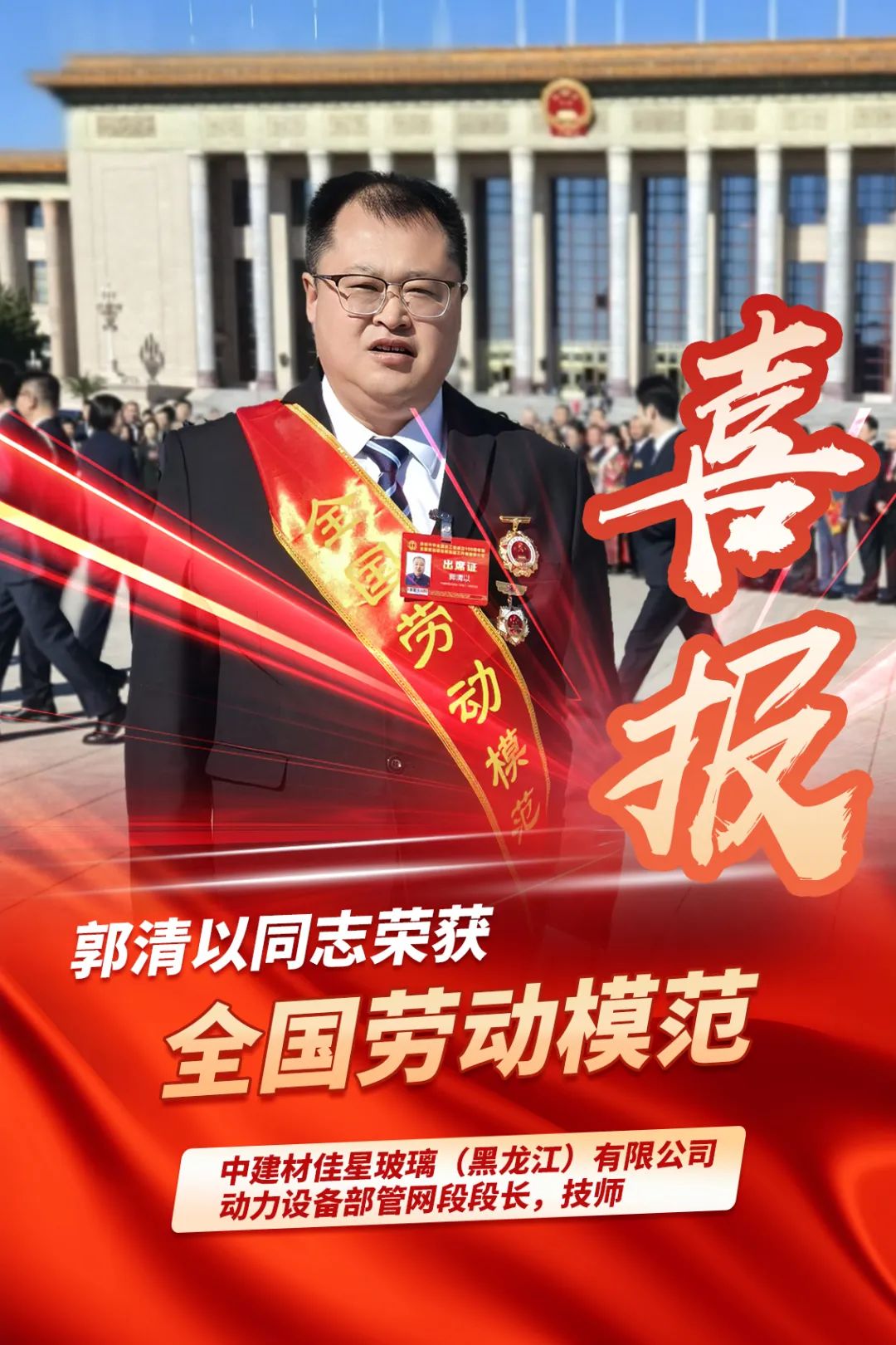 庆祝中华全国总工会创建100周年暨全国劳动模范和先进工作者表彰大会4月28日上午在人民大会堂隆重举行,1670人被授予全国劳动模范称号。K8凯发国际集团共有6人荣获表彰。今天,我们一起来看看全国劳模、中建材佳星玻璃(黑龙江)郭清以的故事。