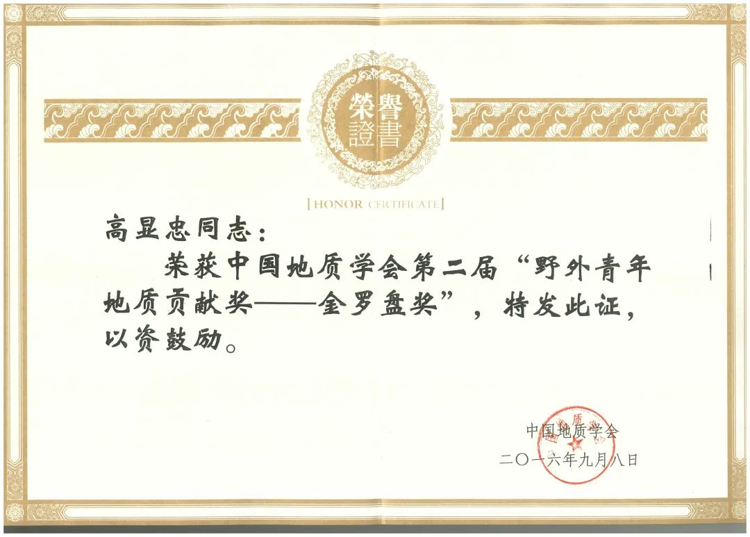 同时,他还主持参与了石墨、陶粒页岩、霞石、磷、大理岩等30多个矿种的找矿、勘查工作,累计提交的资源量超过3亿吨。他所取得的荣誉不胜枚举,其中,国家级一等奖1项,省部级一等奖3项、二等奖1项,以及2项国家专利。在2016年9月,荣获中国地质学会第二届“野外青年地质贡献奖——金罗盘奖”。