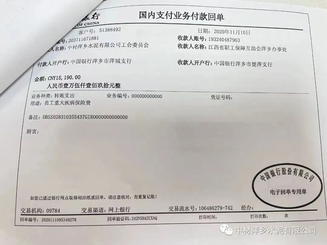 为进一步提高员工福利待遇,减轻员工个人的医疗支出负担。中材萍乡在为全体员工购买“五险两金”的基础上,额外购买了员工重大疾病保险。如果员工患了符合合同范围内的疾病,即可取得一定数额的赔偿,减轻家庭的经济负担。