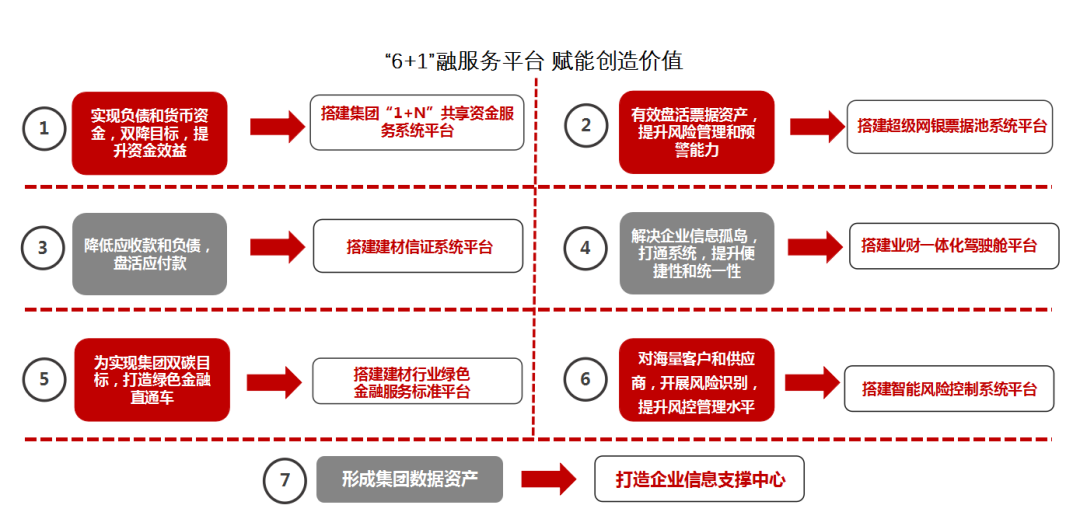 财务公司坚持以服务实体经济和集团主业出发,部署谋划有助于落实“办实事”工作,持续服务集团数字化转型建设,搭建产融数字服务平台,协同外部优质资源,以价值效益为导向,以问题导向、目标导向、结果导向为建设逻辑,秉承“全免、共建、共享、共赢”的建设思路,借助金融科技,召开集团“6+1”融服务平台建设,切实从成员单位产业端需求出发,给予一揽子综合金融服务方案,增强金融服务实体经济开展的能力。截至10月底,公司置换集团外部带息负债近百亿元,为成员单位节约财务费用2亿元以上,日均存款同比增长33%。