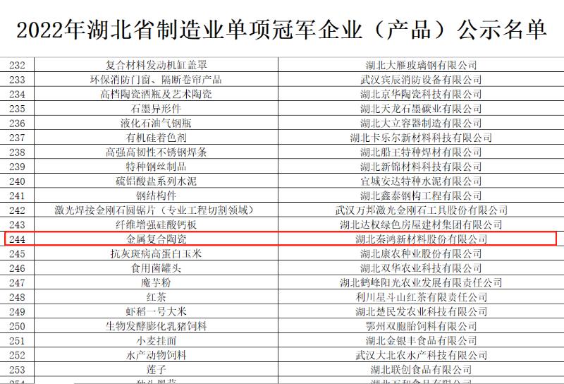 喜讯!湖北秦鸿公司荣获2022年湖北省制造业单项冠军企业(产品)