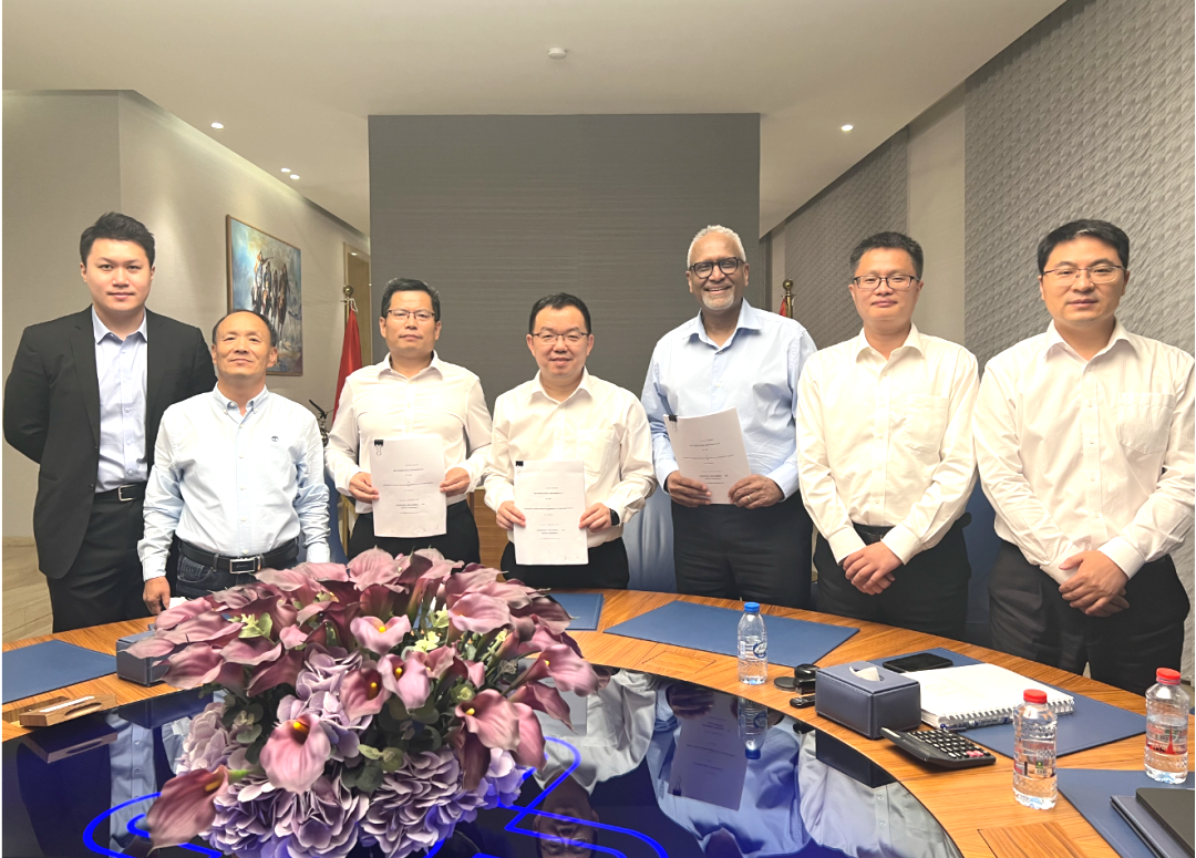 近期,中材建设阿尔及利亚公司与RAHMOUNE集团签署关于赫里赞(Relizane)水泥粉磨站三年O&M运维服务合同。赫里赞水泥粉磨站是由第三方供货的模块化水泥粉磨站,该项目位于阿尔及利亚Relizane Sidi Khettab工业园内,将由中材建设执行该水泥粉磨站的运营及维护服务。 04 中材海外签署中东300MW光伏发电项目