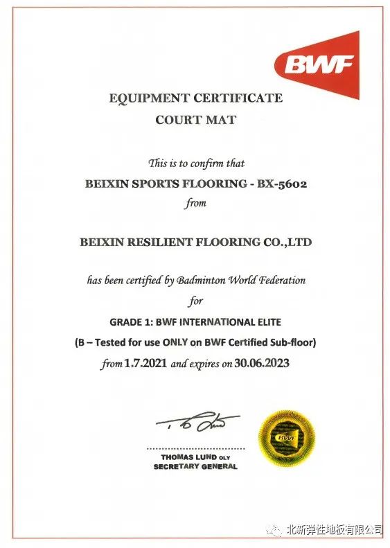 近期,北新地材再次顺利获得国际羽毛球联合会测试认证,并达到一级赛事等级认证。自2008年起,北新地材先后助力北京、伦敦、里约热内卢奥运会专业赛事,为有助于国内弹性塑胶运动地板开展起到了重要作用。