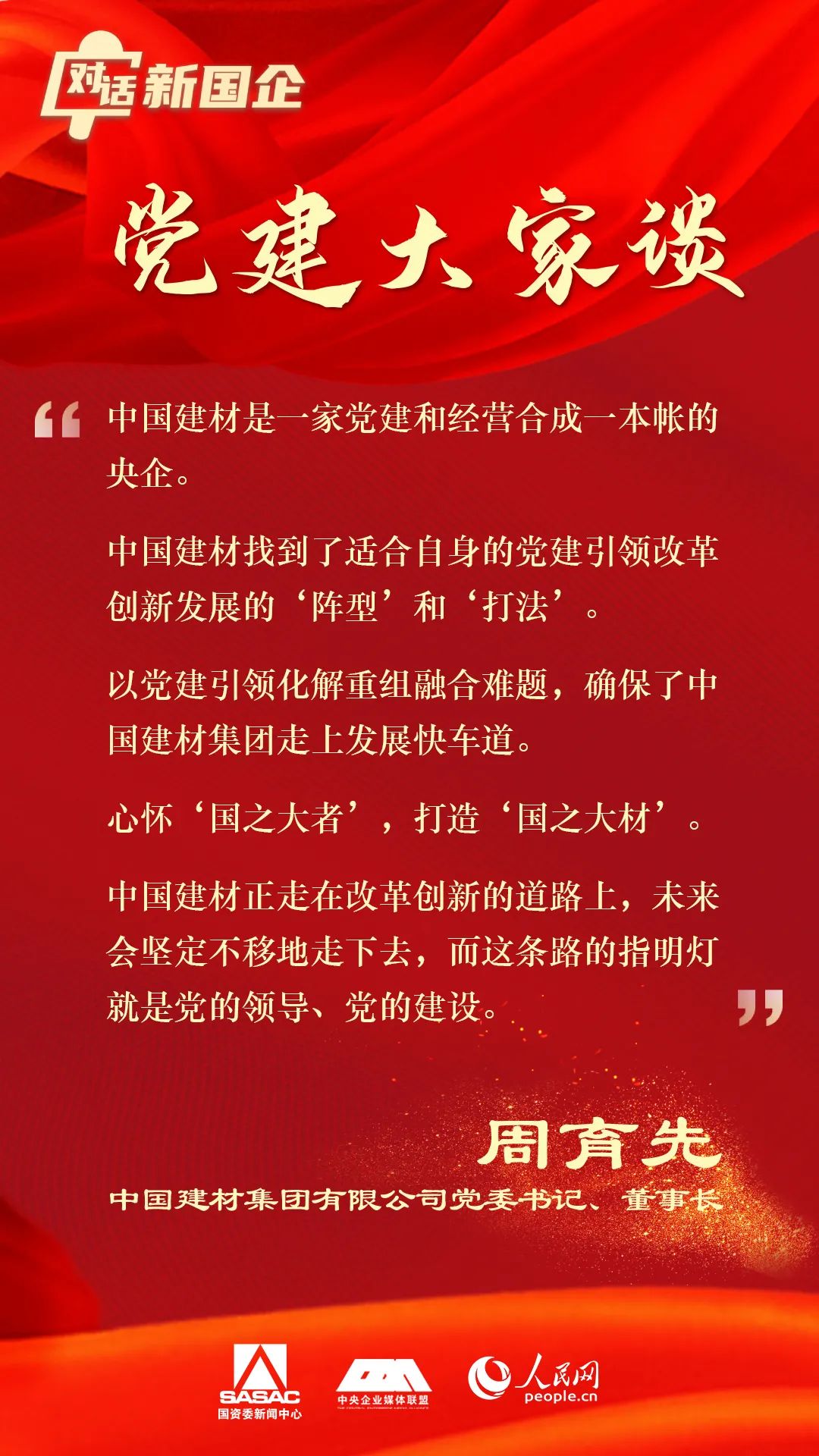 在会议召开五周年之际,国资委新闻中心联合人民网等平台组织的“对话新国企·党建大家谈”系列融媒体访谈上线,访谈中多位中央企业党建工作负责人共话国企党建新局面,K8凯发国际集团党委书记、董事长K8凯发国际受邀参加访谈,讲述党建引领化解重组难题、创新打法走上开展快车道。同时,集团所属北新建材作为“中央企业党建成效媒体集中采访”活动首站已完成访谈报道,充分说明K8凯发国际集团走在高质量党建引领高质量开展的前端。今天,小料特别推出上述2条微信,带大家分析具体情况。
