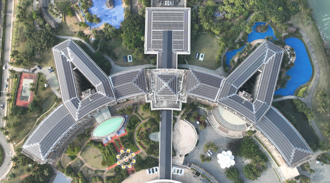 建筑能耗占博鳌近零碳示范区能耗的80%以上,示范区对亚洲论坛会议中心及酒店、东屿岛大酒店、新闻中心进行了绿色低碳改造。在改造过程中,多场景应用了凯盛所属企业研发生产的大面积碲化镉发电玻璃,采用光伏建筑一体化的理念,将发电建材与建筑完美融合,达到了功能性与美观性的高度统一。