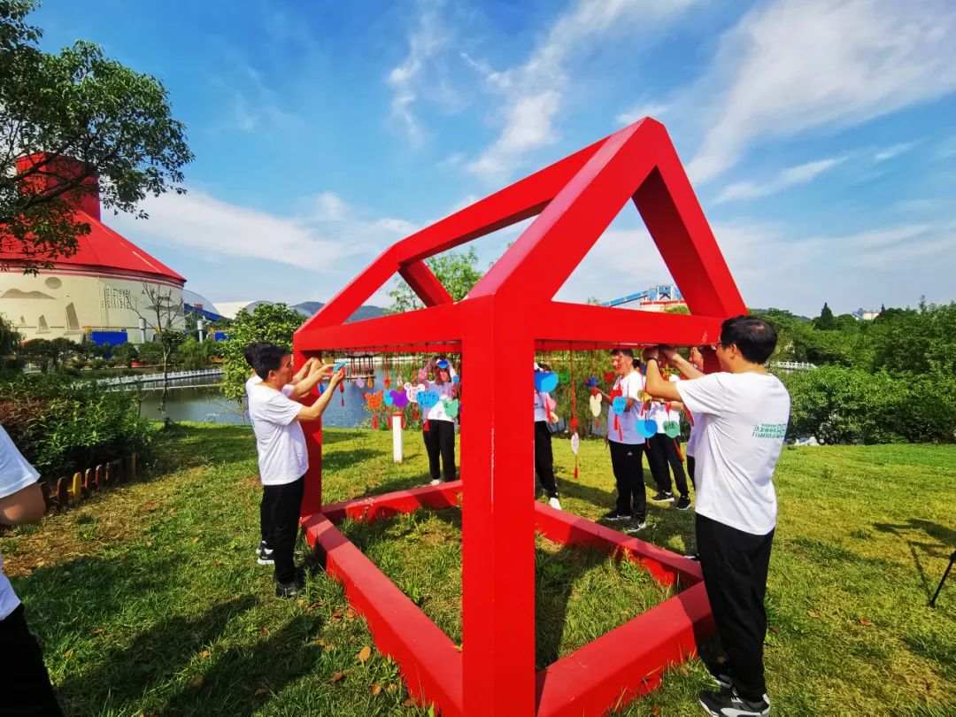 在协同处置大厅,大家集体观看垃圾协同处置以及垃圾分类知识专题片,分析城市生活垃圾“减量化、无害化、资源化”的实际效果,并在风铃牌上写下绿色开展寄语,悬挂于爱心湖畔的心愿亭。