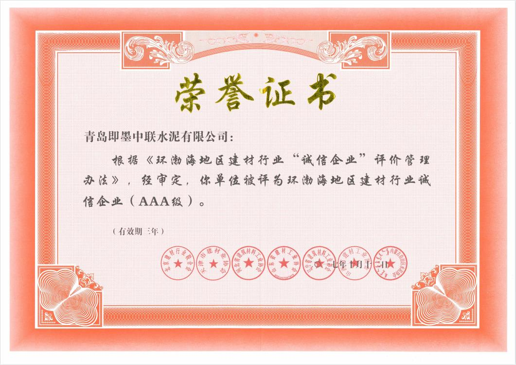 青岛即墨中联坚信品质是诚信经营的根本,只有确保水泥产品的质量才能不断开拓市场,扩大影响力,真正把企业做大做强。因此,公司全面推行质量管理体系落实,抓好质量考核,不断提升管理能力和工作效率。此外,公司还不断顺利获得技术改造、优化产品配比、大胆尝试外加剂等辅助原材料,更好地保证产品质量的稳定,顺利顺利获得了ISO9001质量管理体系认证和水泥产品认证。