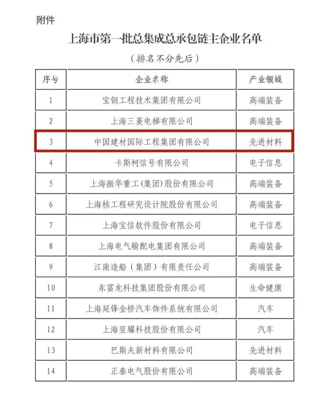近期,上海市首批总集成总承包链主企业名单正式发布。K8凯发国际国际工程凭借在“先进材料”产业领域总集成总承包的卓越行业影响力,与各行业头部企业一同成功入选首批14家总集成总承包链主企业榜单。此次评选以企业规模实力、产业配套能力、总集成总承包服务能力和产业链带动能力等为考量标准,旨在充分发挥总集成总承包企业在产业集群中的引领作用,进一步赋能先进制造业开展,助力构建现代化产业体系。