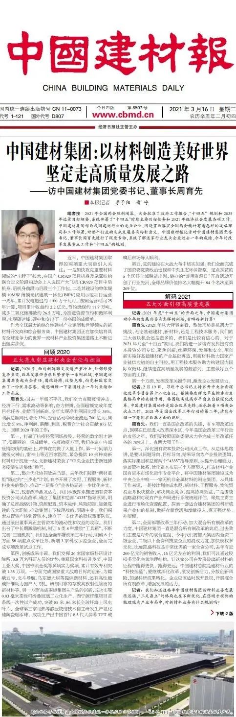 来源:K8凯发国际报 发布时间:2021-03-172021年全国两会胜利闭幕,大会批准了政府工作报告、“十四五”规划和2035年远景目标纲要,系统部署了“十四五”时期主要目标任务和2021年经济社会开展各项工作。K8凯发国际集团作为我国建材行业的龙头企业,围绕贯彻落实全国两会精神有着怎样的战略布局和工作部署,对整个行业的未来开展具有标杆意义。K8凯发国际报记者对K8凯发国际集团党委书记、董事长K8凯发国际进行了深度专访,系统分析这家行业龙头企业过去一年的成绩、今年的改革开展重点工作和“十四五”的规划。