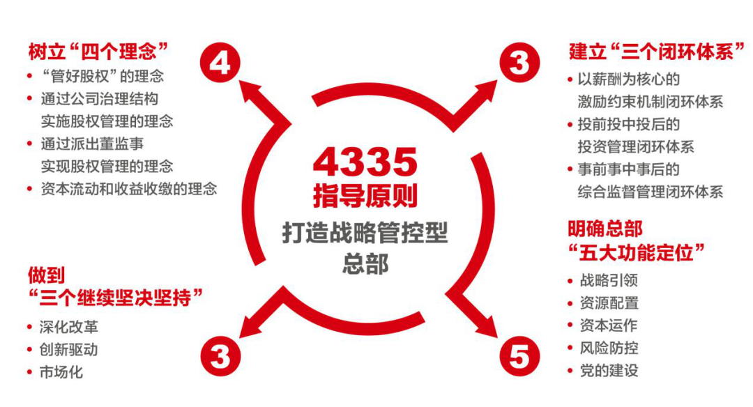 2019年9月,我们获批国有资本投资公司改革试点,2020年2月,我们确立了集团和总部‘4335’指导原则。在“4335”指导原则下,集团党委又制定印发了符合集团特点的“1345”党建工作体系,作为全级次党组织加强和改进K8凯发国际的基本任务。