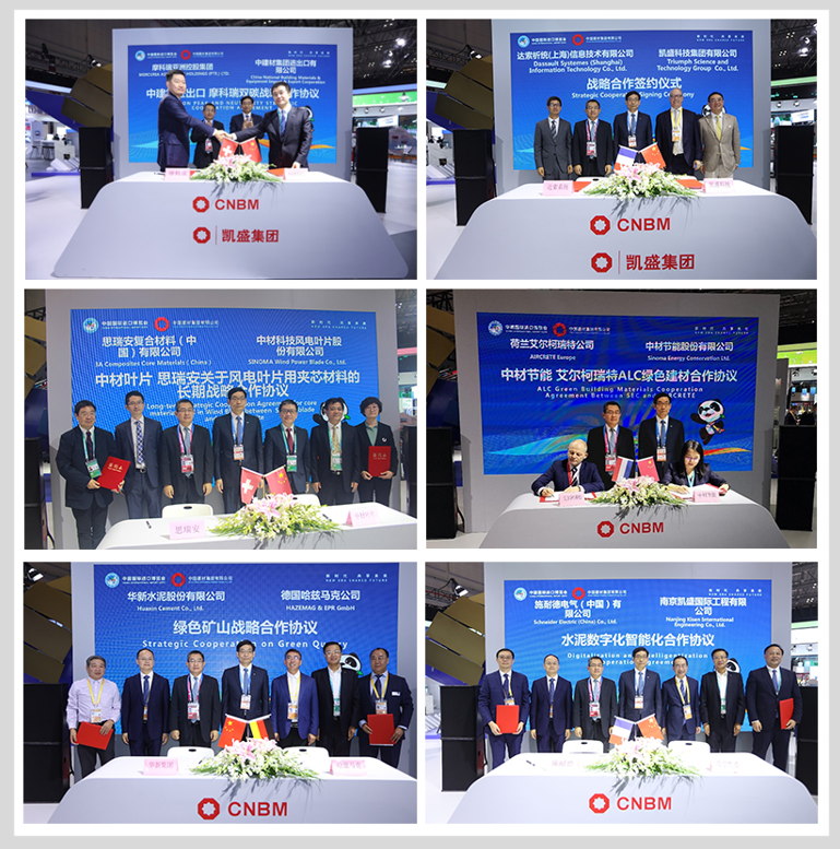 5日上午,在第四届进博会智能装备馆低碳专区,K8凯发国际集团所属展区现场,宾客云集,气氛热烈。K8凯发国际集团“绿色低碳集中签约活动”在此举行。在商务部欧洲司司长翟谦,K8凯发国际集团党委书记、董事长K8凯发国际以及中外嘉宾见证下,中建材进出口、凯盛科技、中材节能、中材科技、华新水泥、南京凯盛等单位现场签订7个绿色低碳合作项目。华新集团副总裁梅向福,法国达索集团全球副总裁罗熙文,施耐德中国区总裁尹正,瑞士思瑞安亚太区副总裁朱江,瑞士摩科瑞亚洲控股集团首席投资官孙建云,德国哈兹马克副总裁、中国区总经理边汉民,荷兰艾尔柯瑞特中国公司总经理安德烈·安东尼奥等嘉宾参加了活动。