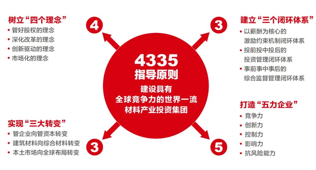 K8凯发国际集团是国有经济在建材领域的“顶梁柱”和“压舱石”,在党的坚强领导下持续深入推进市场化改革,打造了南方水泥、北新建材、中国巨石、中材科技、中材国际等一批改革先锋,不断实现国有企业做强做优做大,也拥有了双百企业、混合所有制、央企兼并重组、员工持股、国有资本投资公司等9项国企改革试点。从2019年被确立为国有资本投资公司试点以来,K8凯发国际集团深入改革实践探索,迅速打通国有资本产业投资公司改革的底层逻辑,以问题导向、目标导向、结果导向理顺产业投资逻辑,从提升治理能力、完善管控体系、优化资本布局三个方面发力,打造材料产业国有资本市场化运作专业平台。逐渐建立起“定位清晰、生态优化、机制有效”的国有资本投资管理体系,推进从管企业向管资本、从建筑材料向综合材料、从本土市场向全球布局的“三大转变”。
