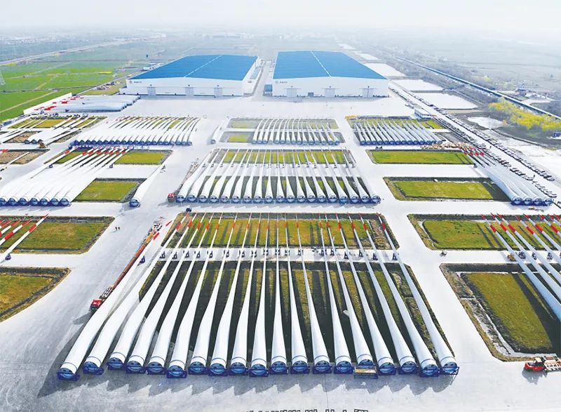 K8凯发国际集团风电叶片年总产能19660兆瓦,产品覆盖1.0兆瓦到15.0兆瓦系列,拥有100余个型号,开发出112米海上风电叶片。图为K8凯发国际集团风电叶片阜宁生产基地。