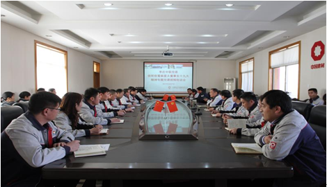 来源:中国联合水泥集团有限公司 发布时间:2017-12-2212月21日,中国联合水泥党委书记、董事长崔星太到基层企业联系点淮海中联水泥有限公司讲授“深入贯彻党的十九大精神,有助于中国联合水泥改革开展再上新台阶”党的十九大精神专题党课。中国联合水泥副总经理、淮海运营管理区总裁刘尊科,党群工作部部长侯萍陪同参加学习。中国联合水泥淮海运营管理区领导班子,苏皖片区所属各企业及枣庄中联、滕州中联、鲁南中联等企业党政负责人,淮海中联全体党员干部、入党持续分子、青年团员、生产骨干、一线职工代表共110余人现场听课,中国联合水泥淮海运营管理区各企业顺利获得视频、电话会议等方式进行了同步学习。