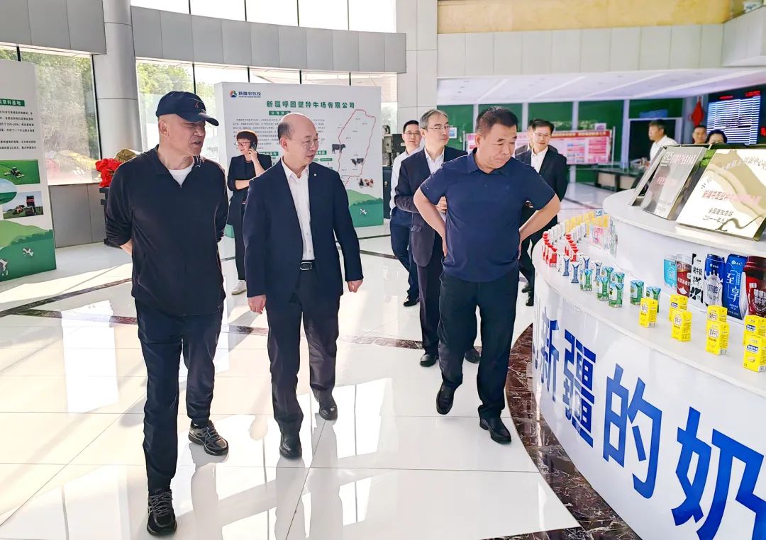 常张利一行实地参观了农牧投集团所属呼图壁牧场和西域春乳业,调研了养殖废弃物生产生物天然气项目,并就对口支援有关事宜进行了深入研讨。