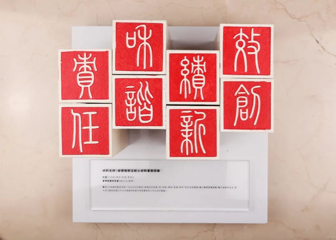 这一组新材料篆刻,展示着习近平总书记提出的科学家精神的核心内涵,是集团的科学家们用篆刻的艺术形式,融合科技创新成果,向我们诉说着中国传统文化与现代科技的深度融合,诉说着善用文化与科学家精神的高度契合,诉说着科学家们的品格和家国情怀……