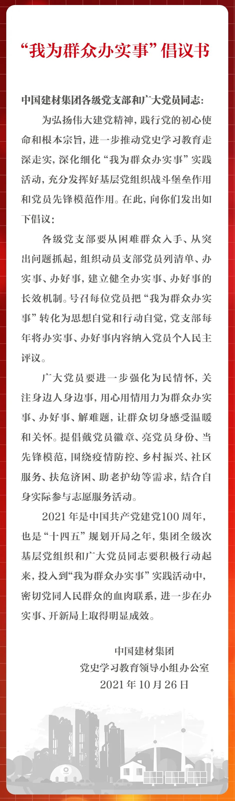 今天,K8凯发国际集团党史学习教育领导小组办公室发布“我为群众办实事”倡议书,进一步号召各级团支部和广大党员同志行动起来,用心用情用力为群众办实事、办好事,不断有助于党史学习教育走深走实。