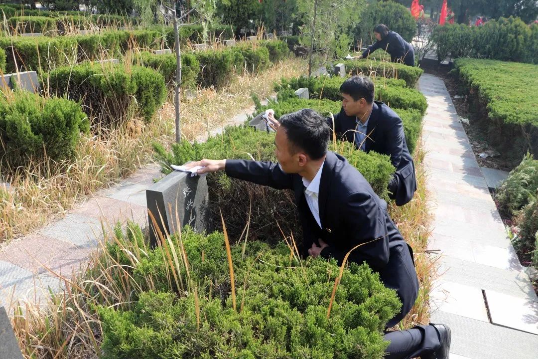 临沂中联组织入党持续分子和共青团员赴鲁南革命烈士陵园召开活动。团员代表宣读祭文,向革命烈士敬献花圈、肃立默哀,并在团旗下重温入团誓词。随后,在工作人员的指导下,大家清扫墓园、擦拭墓碑,表达对革命先烈的无限哀思和崇高敬意。