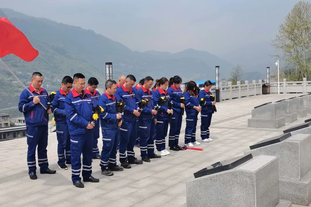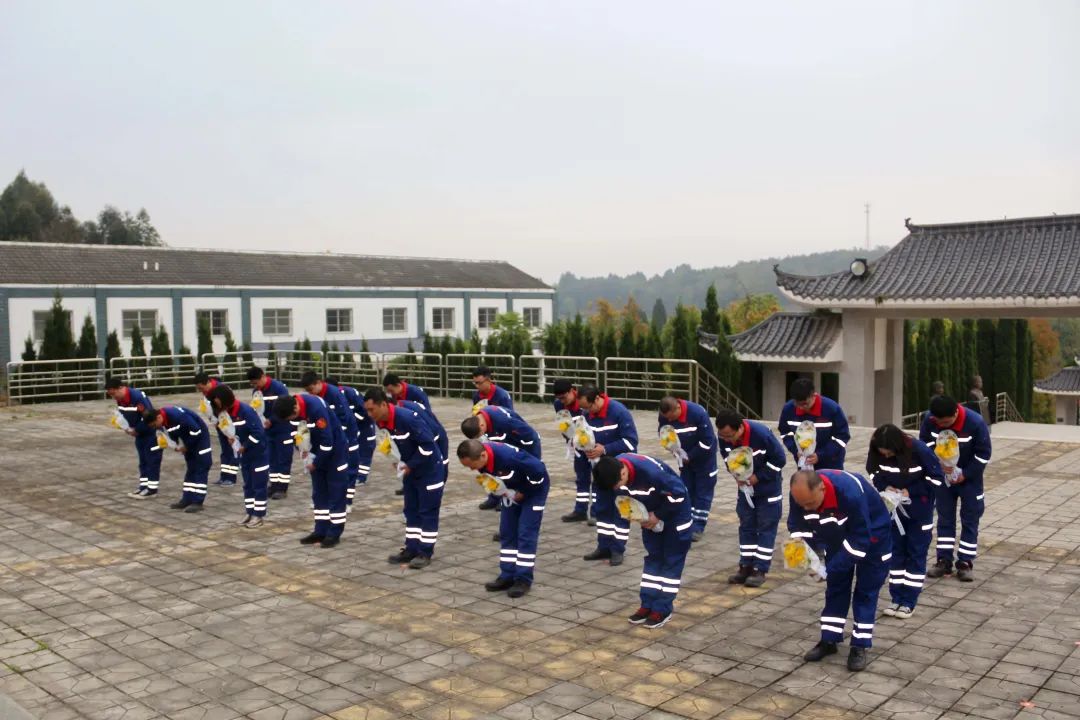 四川安县中联在绵阳市安州区烈士陵园组织召开“缅怀革命先烈 传承红色意志”主题党日活动。在庄重肃穆的革命烈士纪念碑前,全体党员整齐列阵向纪念碑三鞠躬,为烈士敬献鲜花,表达对革命烈士崇高的敬意和深深的怀念。