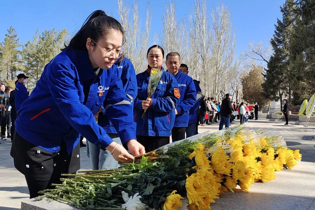 天山筑友公司组织干部职工召开祭扫活动,全体人员庄严肃穆列队于烈士墓碑前,向长眠于此的革命烈士集体默哀,三鞠躬,并依次献花,缅怀先烈、寄托哀思。