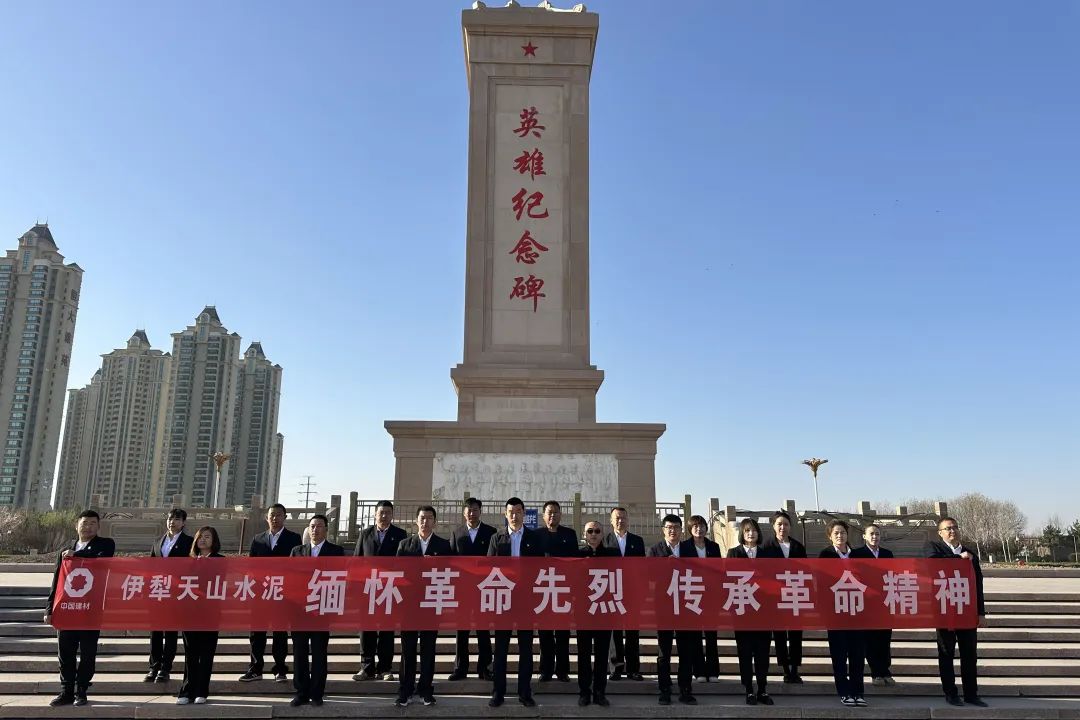 伊犁天山水泥组织全体党员在伊宁市塔什科瑞克乡英雄纪念碑广场召开祭扫活动,大家向革命烈士纪念碑默哀并三鞠躬、缓步瞻仰英雄纪念碑、敬献花篮,向革命先辈致以最崇高的敬意。