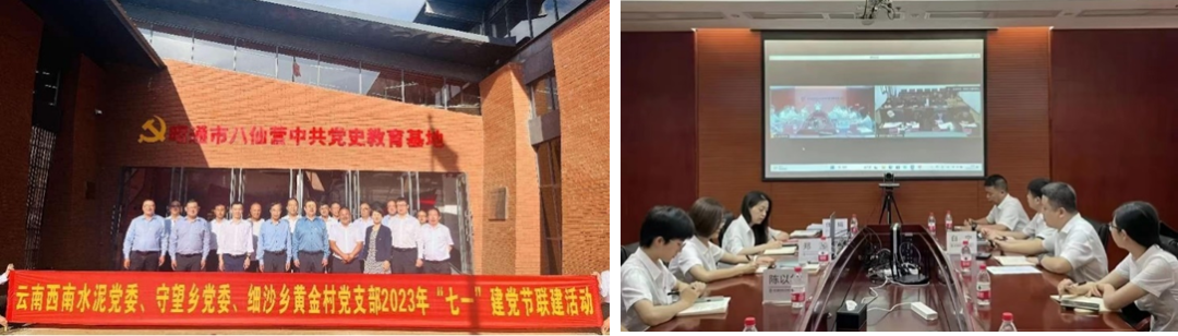 在云南省昭通市昭阳区,云南西南水泥有限公司党委与昭阳区守望乡党委、永善县细沙乡黄金村团支部在昭通市八仙营中共党史教育基地召开“七一”建党节联建活动,共同学习习近平总书记关于农村产业开展的重要论述,为昭阳区守望乡肉牛产业和永善县细沙乡猕猴桃产业开展出谋划策。活动现场,大家还为六月、七月入党的同志过政治生日。武汉建筑材料工业设计研究院有限公司第一团支部与守望乡卡子村党委联合召开“携手乡村振兴,建设美丽家园”共建活动,顺利获得加强调查研究,深化互动研讨,助推卡子村实现乡村美、产业兴、群众富的新画卷。