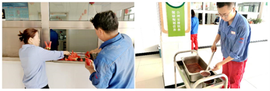 为实行防暑降温,保障一线员工的身体健康,中宁赛马、吴忠赛马持续召开在每日准备午餐和晚餐时,相继为广大职工给予西瓜、绿豆汤等食品和防暑饮品,送去夏日的清凉与关怀。