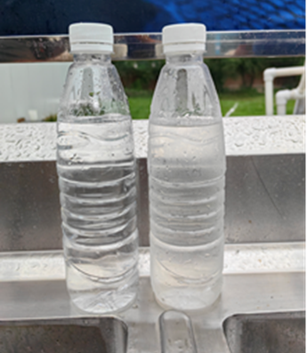 进出水水样对比,左图为净化后的水
