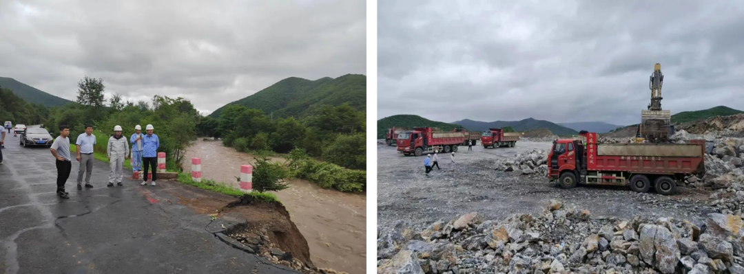 8月11日,汪清县鸡冠乡告急,河水汹涌奔腾,公路被冲出缺口,道路通行中断。灾情就是命令,汪清北方班子成员带队与矿山开采单位一同前往抗洪现场,参与道路河堤加固与抢险救援工作。