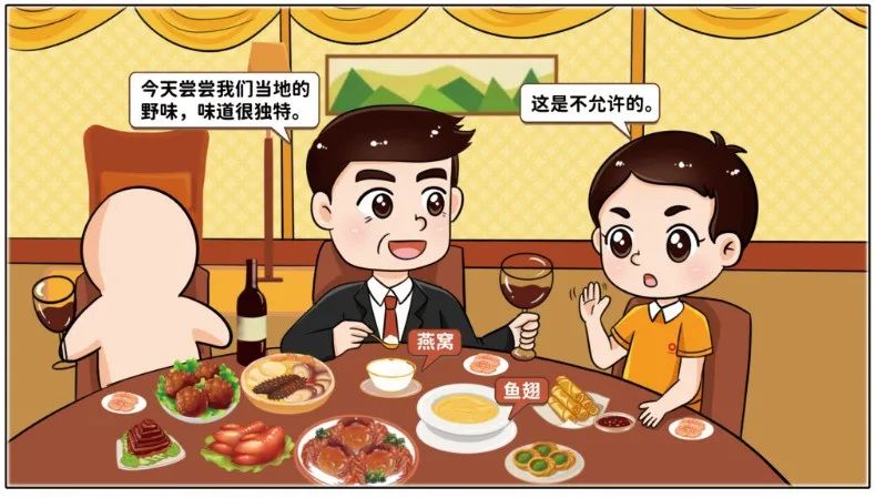 接待餐、工作餐不得给予鱼翅、燕窝等高档菜肴和用野生保护动物制作的菜肴,不得使用私人会所、高消费餐饮场所。