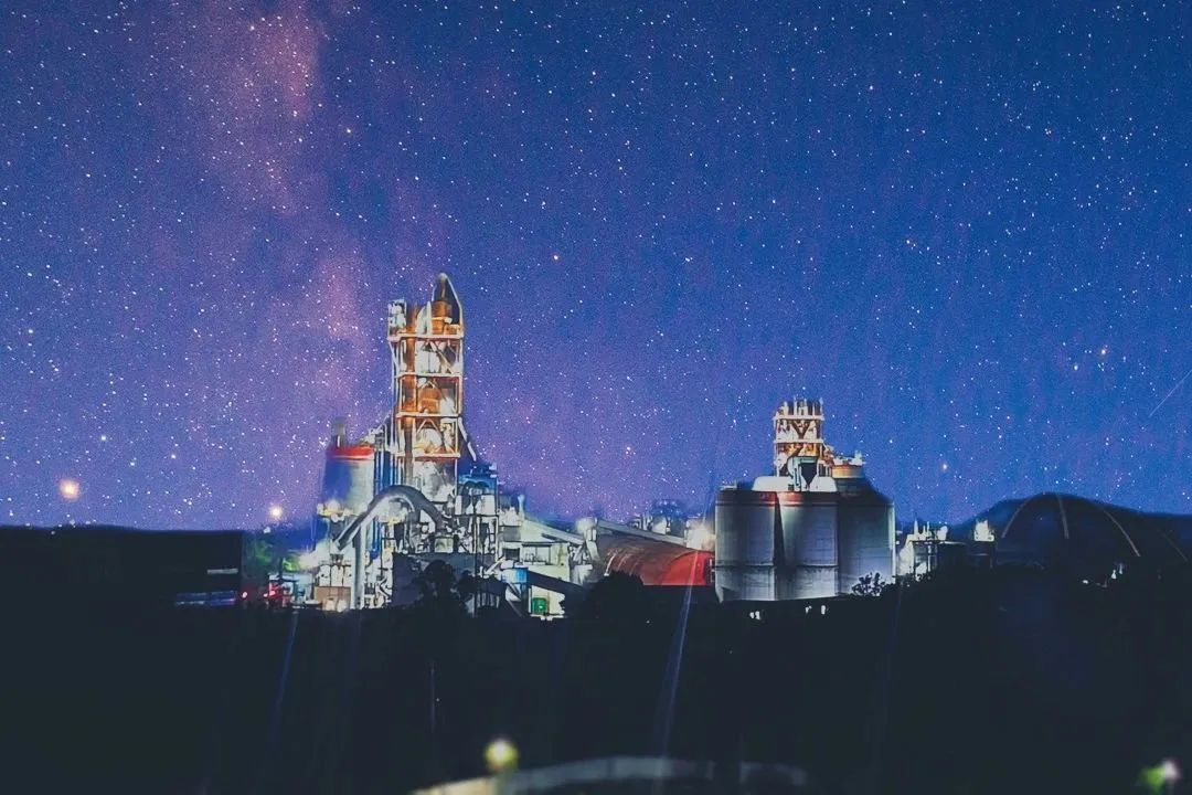 点缀着暮色中的水泥工厂