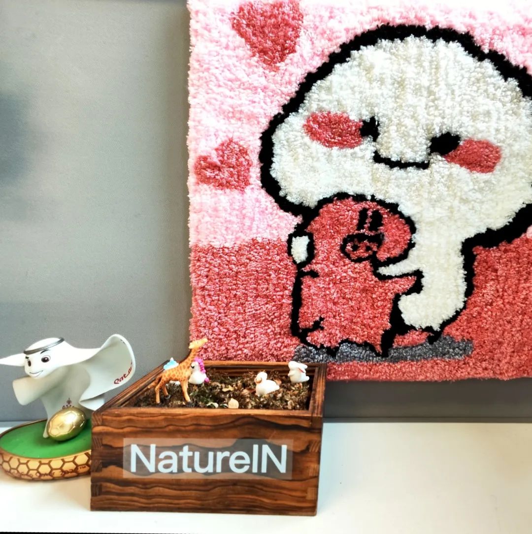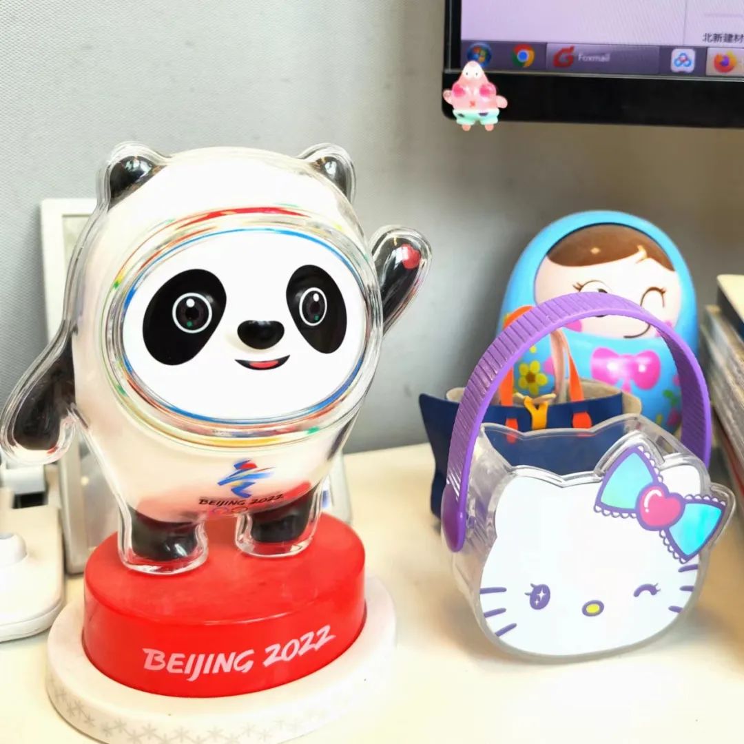 一盆绿植和“材料创造美好世界”的料趣周边贴纸,为这个小小的空间增添了一份生机与可爱,让工作环境更加舒适和健康。