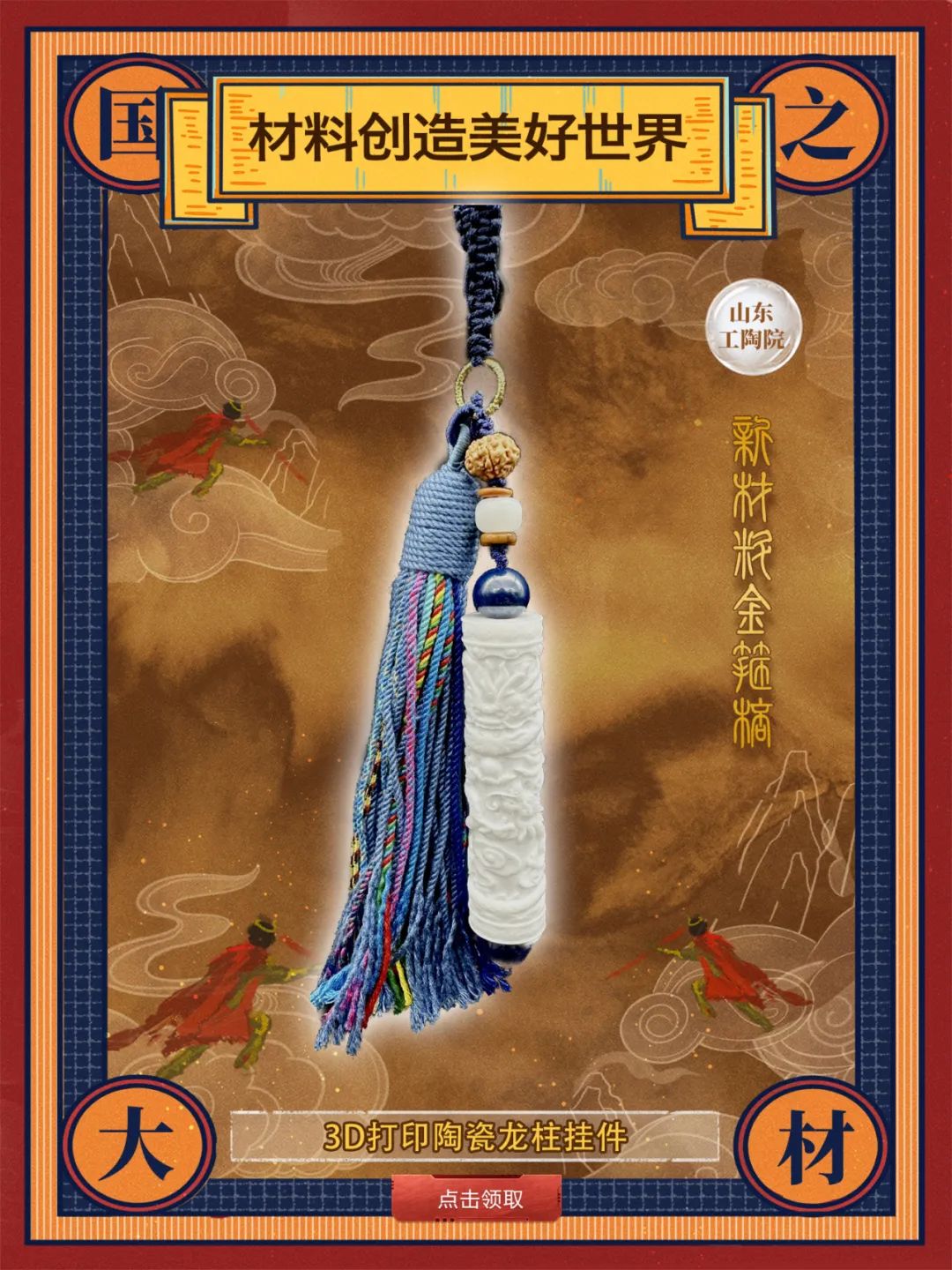 陶瓷龙柱挂件采用先进陶瓷3D打印技术制备而成。先进陶瓷材料具有高强度、高硬度、耐高温、耐磨损、耐腐蚀及优异的电学、热学、光学和生物学性能,不仅广泛应用于机械、冶金、化工、能源、环保等工业领域,而且在航空航天、生物医疗、无线通讯、半导体等高科技领域及新型产业中也取得越来越多的应用。3D打印技术是“第四次工业革命”具有代表性的颠覆性技术,可实现传统工艺难以实现的轻量化、复杂结构、个性化产品的一体成型。先进陶瓷龙柱挂件采用了新材料、新造型和新工艺,突破了传统制造和工匠制造造型的局限性,赋予新材料文创首饰独特的设计美感。