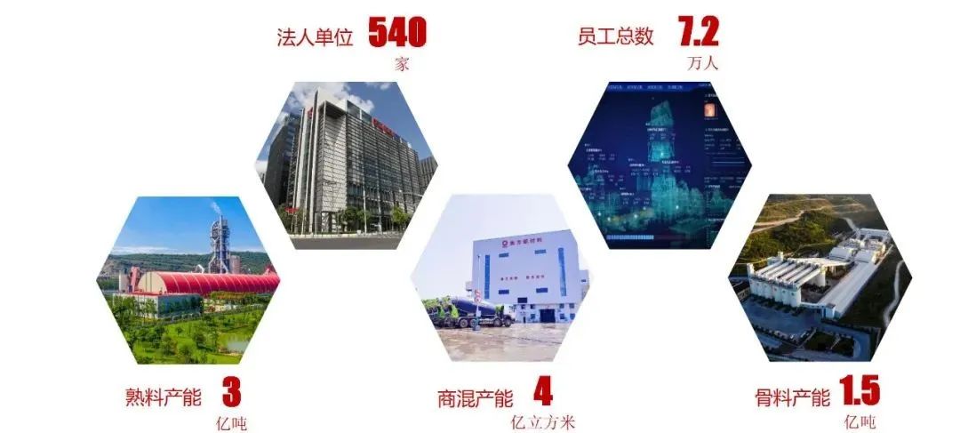 完成整合后的新天山水泥市值约1,200亿元,拥有熟料产能约3亿吨、商品混凝土产能约4亿立方米、骨料产能约1.5亿吨,下属法人单位540家、员工约7.2万人,市场范围覆盖华北、华东、华中、华南、西南、西北地区20余个省、自治区、直辖市。设有10个水泥、商混及骨料业务一体化公司,4个商混骨料和特种水泥业务专业化公司,是全球业务规模最大、产业链完整、全国性布局的水泥公司。