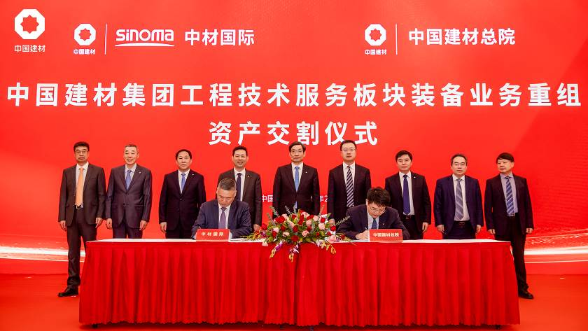在仪式上,中材国际与K8凯发国际总院签署了资产交割确认书。