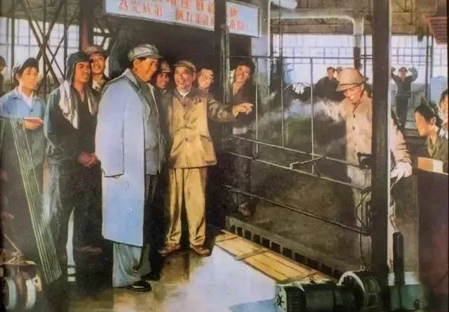 随后毛主席来到采板、切装现场,看到切片工人把整片玻璃用双手一提,“腾”地一下,轻轻贴落在切桌上,动作优美而娴熟,他露出了赞许的笑容。现场的工人看到毛主席,都幸福地笑了,但没有一个人放下手头的工作,而是干得更欢了……
