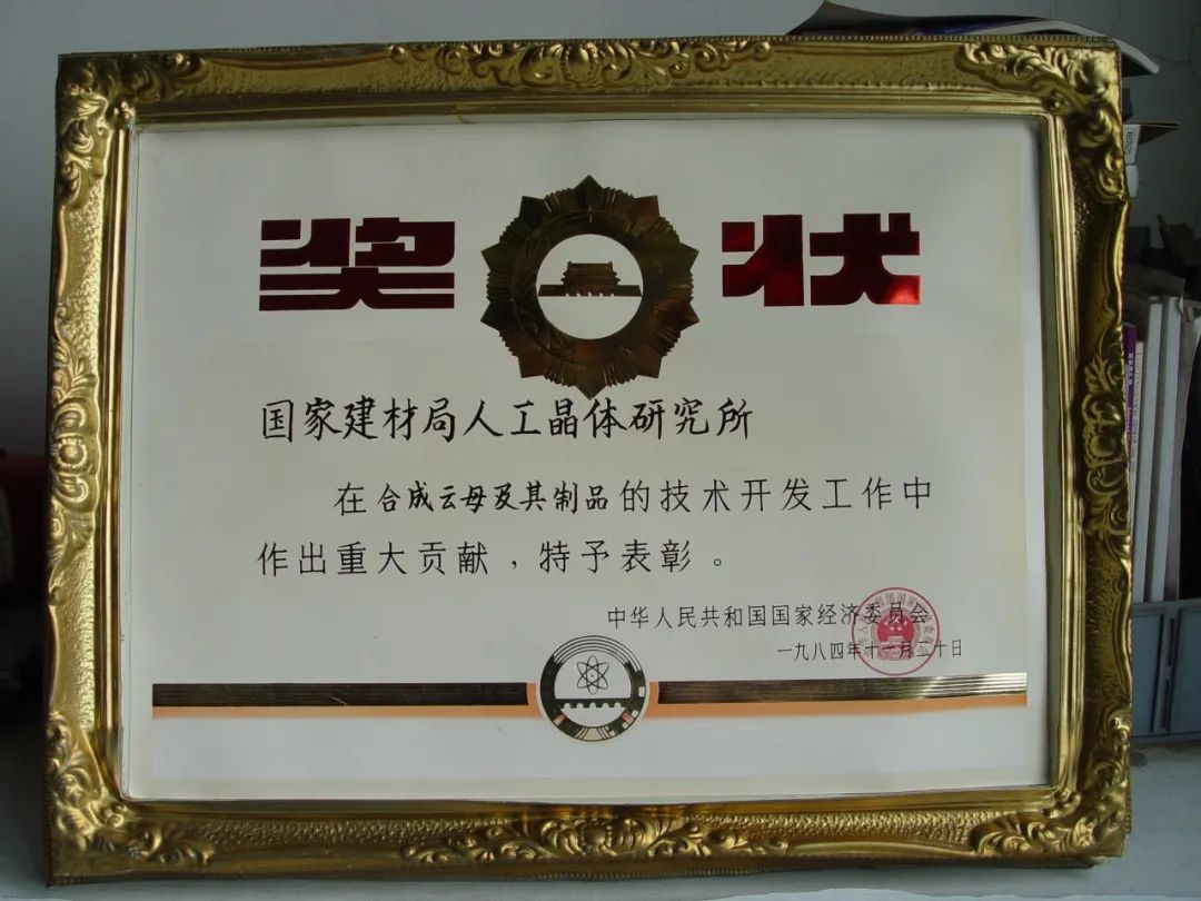 1978年3月,党中央在北京人民大会堂召开全国科学大会,研究所所长兼党委书记张静之与合成云母项目组组长王国方参加大会。大会授予研究所内热法合成云母组“全国科技先进集体”、授予王国方“全国先进科技工作者”称号,并受到时任中共中央主席华国峰、副主席叶剑英、邓小平、汪东兴等国家领导人接见。