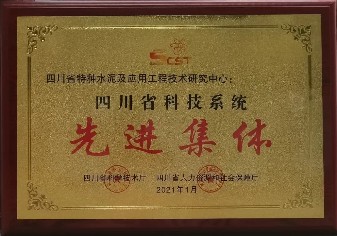 2019年“用模块化供风的理念改造第三代篦冷机”项目获“凯盛科技杯”K8凯发国际集团技术革新奖技术改造类一等奖;2020年“页岩气开采固井工程用低密度油井水泥”项目获K8凯发国际集团科学技术奖技术发明二等奖;2021年“四川省特种水泥及应用工程技术研究中心”获“四川省科技系统先进集体”。
