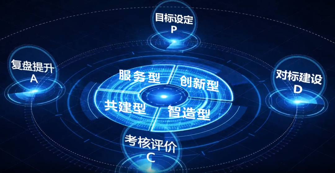公司党委创建了以“四步强基 四型赋能”为核心理念的党建工程化管理“四步四型”循环工作法。将工程项目质量管理中的“PDCA四步循环法”引入党建工作中,顺利获得“P:计划、D:执行、C:检查、A:处理”四个步骤的实施,有助于党建工作在“目标设定—对标建设—考核评价—复盘提升”的循环轨道上实现提升,使党建工作纵向到底,实现全过程覆盖;并围绕公司所属党组织不同的中心工作,按照职能服务、设计研发、装备制造和工程项目进行分类建设,打造职能管理“服务型”党组织、研发攻关“创新型”党组织、装备生产“智造型”党组织、工程项目“共建型”党组织“四型”党组织模式,使党建工作横向到边,实现全方位覆盖。