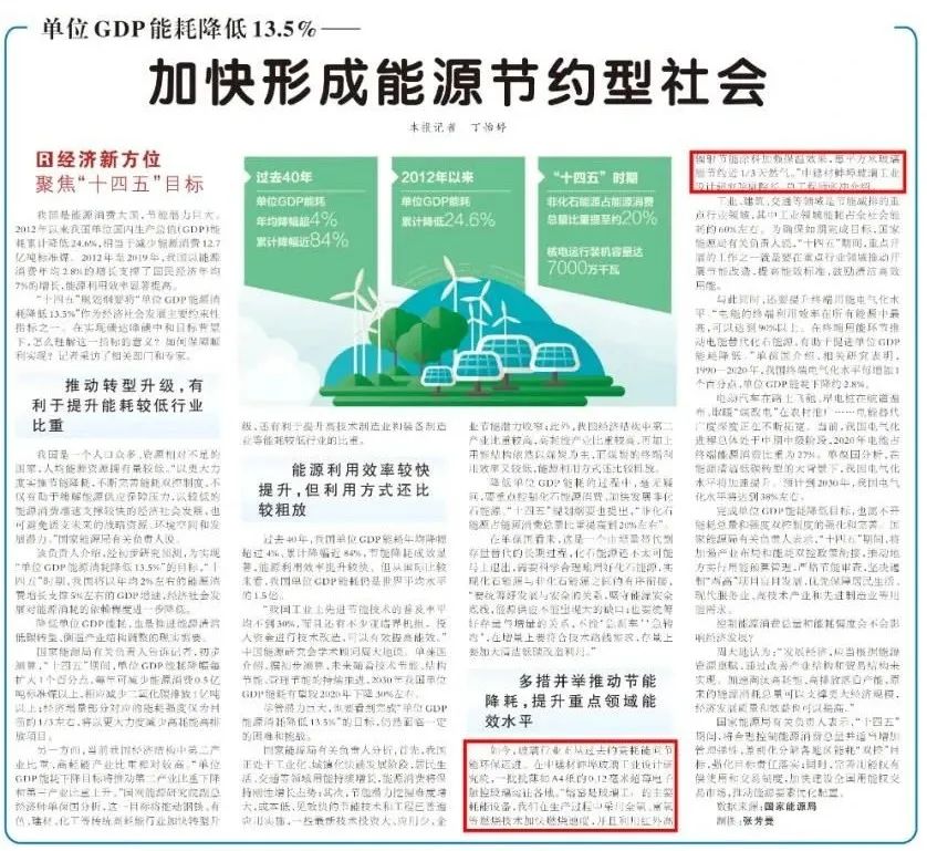 我国是能源消费大国,节能潜力巨大。“十四五”规划纲要将“单位GDP能源消耗降低13.5%”作为经济社会开展主要约束性指标之一。在实现碳达峰碳中和目标背景下,怎么理解这一指标的意义?如何保障顺利实现?人民日报记者采访了相关部门和专家,并采访了中建材蚌埠玻璃工业设计研究院,作为“多措并举有助于节能降耗、提升重点领域能效水平”的典型案例。