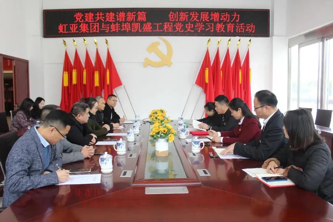 3月31日,蚌埠凯盛党委与安徽虹亚汽车集团党委结对共建并召开党史联学活动,探索国有企业和非公企业党建工作互鉴互补、共建创新的新模式。