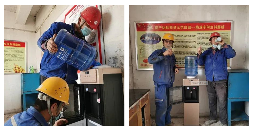 近期,和静天山水泥在召开党史学习教育中,根据职工群众实际需要解决了饮水问题。安排工会组织在原料进门、出厂水泥环节安装开水器、饮水机等饮水设施,确保服务公司的司机有水喝,提高了顾客的满意率;在烧成车间、制成车间等环境温度较高的岗位也配备了饮水设施,解决了职工饮水问题,提高了职工的幸福感。