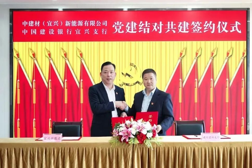 中建材(宜兴)新能源与中国建设银行江苏省分行宜兴支行召开“联学党的二十大、银企共建促开展”党建结对共建活动,探索新时代新形势下基层党建工作的新途径新方法。