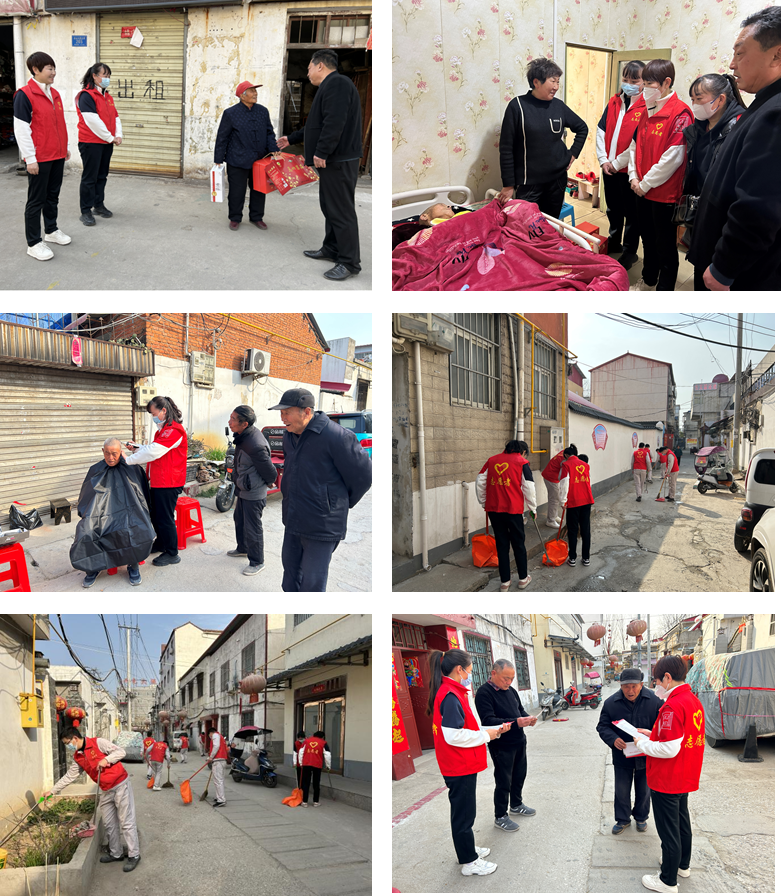 豫龙同力组织志愿者来到确山县盘龙镇官庄社区,为孤寡老人送去生活用品以及牛奶、水果等慰问品,悉心询问他们的饮食起居和身体状况,为他们科普健康知识,并进行了剪发服务、房间整理、院落清扫等活动。此外,志愿者们对官庄社区各个街道进行了环境清理,向社区居民发放《河南省文明行为促进条例》《驻马店市文明行为促进条例》等宣传页并讲解内容,号召大家共同建设美丽文明的家园。
